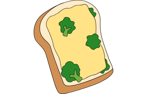 いつものトーストに、冷凍ブロッコリー、スライス(プロセス)チーズ、マヨネーズでオープンサンドに。